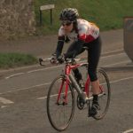250 to go and Paul, grunting loudly, launches his sprint in a fairly big gear. I’ve seen it coming and am onto his wheel immediately. It’s a really strong effort and we’re travelling at some speed as we round the final right left kink before the finish line comes into sight. With 150 to go it’s time for my counter. I kick hard and move to the right and up the windy side. Has Paul been saving anything? Will he be able to respond? The answer is no and I punch past and into clear air.