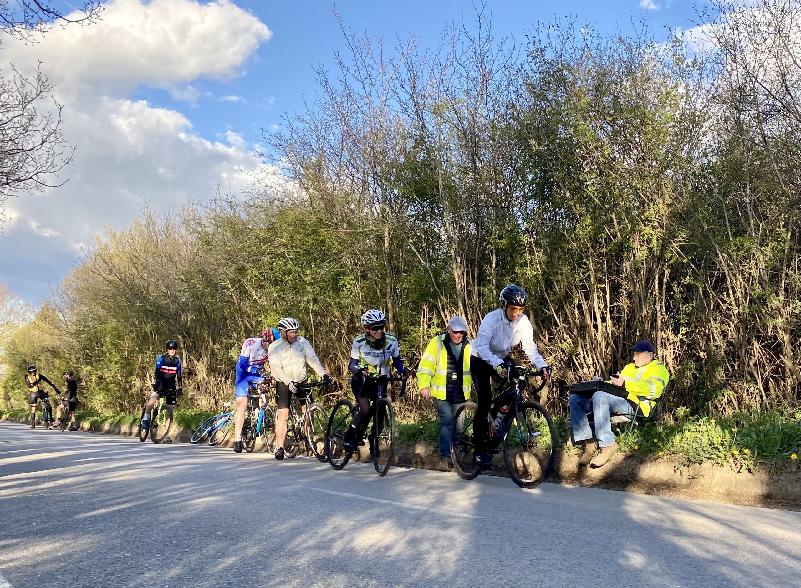 On a sunny but fairly windy evening, 23 riders turned up for the first evening ten of the summer, an excellent turnout. Four riders rode fixed in memory of Mick Robinson.