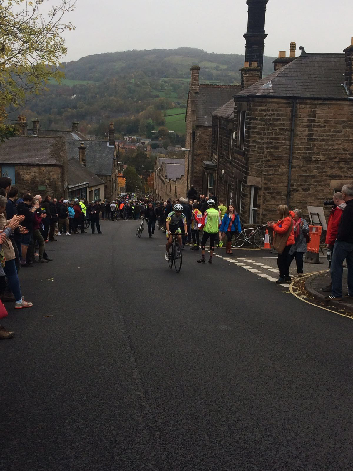 I had as near a perfect run as possible, taking Mr Parker’s wise advice of starting “firm” but not too fast. The steepest part is around halfway in where the road cruelly ramps up to a 20% gradient, forcing you out of the saddle in the process. Past the finish for last week, i looked at the Garmin and was about 2 minutes so had improved significantly from last week. Then round the right hander into the relatively flatter section of about 8% gradient, but instead of easing up this is where you have to find that extra bit in you to pick up the speed and sprint for the line!